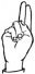 На ћирилици написано КРАСОЈЕ БУГАРИНОВИЋ састоји се из 18 слова [?]. Исписано ћириличном једноручном азбуком за глувонеме: